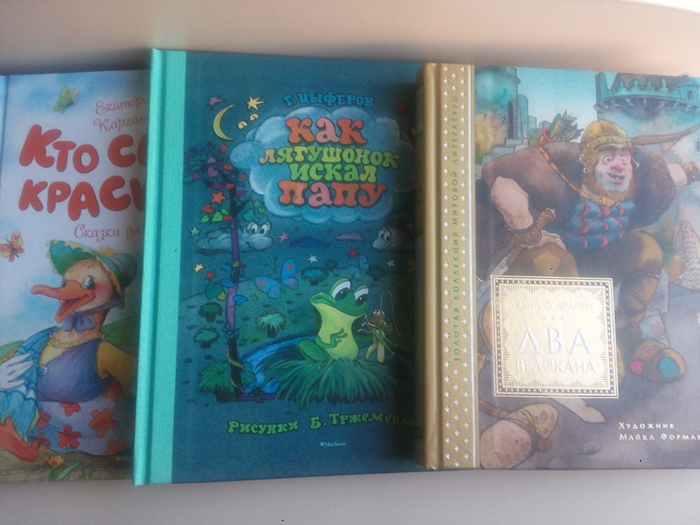 Е.Карганова "Кто самый красивый" и Г. Цыферов "Как лягушонок искал папу" на сейчас. Ирландские сказки "Два великана" приобретены на вырост😊.