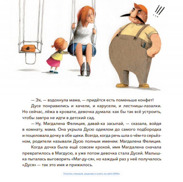 Совсем скоро Дуся впервые пойдёт в детский сад. Девочка очень волнуется. Что же её там ждёт? Подружится ли она с кем-нибудь? А вдруг в детском саду живёт большой фиолетовый дракон?