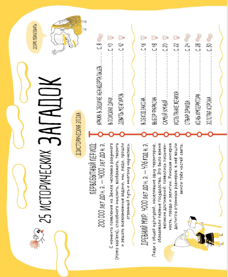 Загадку, посвященную определенному историческому периоду (палеолит, Египетская цивилизация, Нашествие варваров, Великая французская революция и т.п.) предваряет краткая историческая справка об этой эпохе.