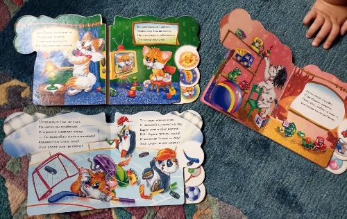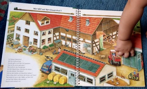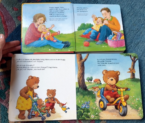 Еще две немецкие покажу заодно, тоже регулярно рассматривались, особенно вторая (справа). Очень актуально все ребенку, мишка там ест, одевает сапожки, едет на велосипеде, идет за покупками.