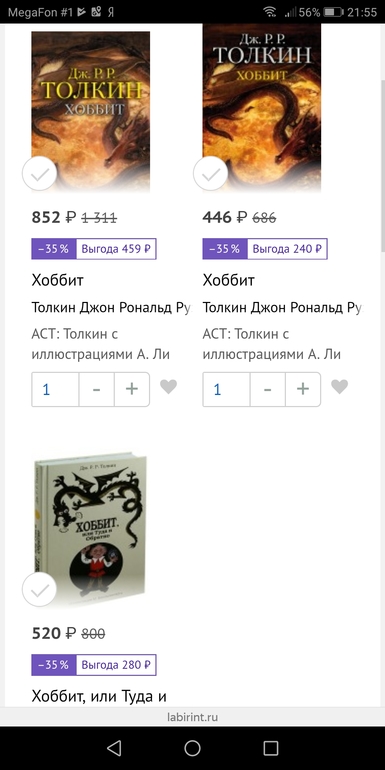 Спасибо. Только из за бумаги такая разница? Я еще посмотрела, что в более дорогой книге - названия глав красным цветом, подумала, может быть там и рисунки черно - красные, а не черно - белые. А есть сейчас в продаже с иллюстрациями Толкина? Тоже читала, что перевод Рахмановой лучший, но почему то всего одна книга с ее переводом(