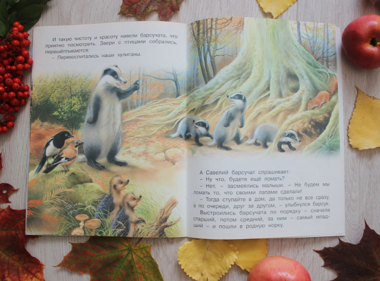 «Непослушные барсучата». Поучительная история на фоне осеннего леса о проказниках-барсучатах.