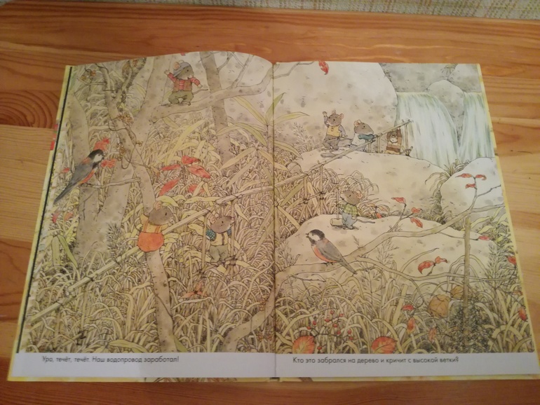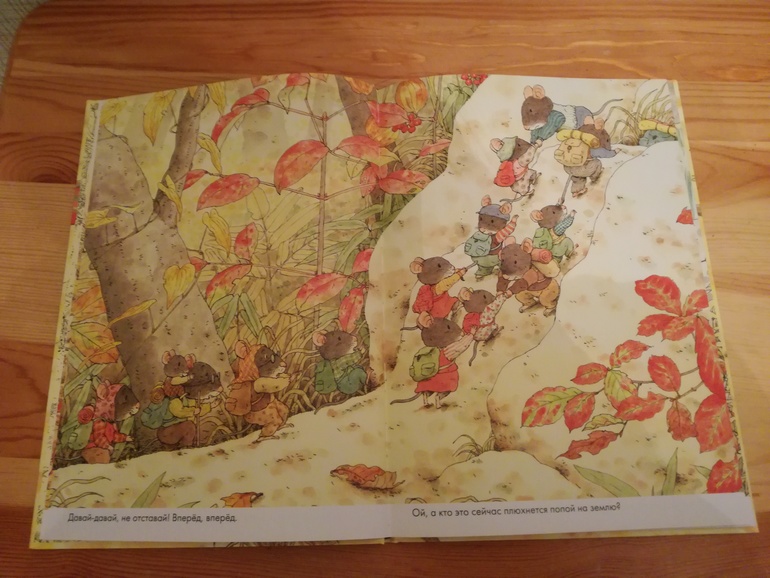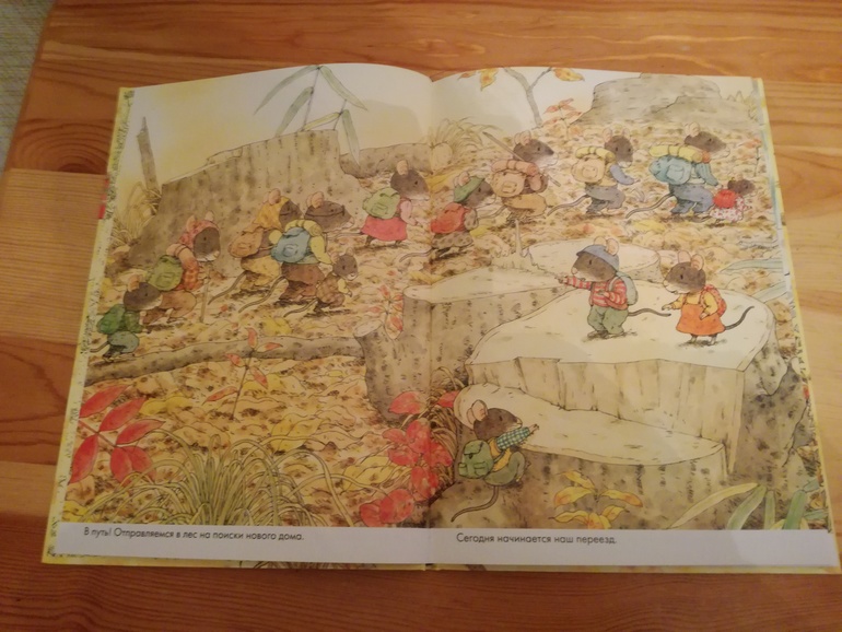 14 лесных мышей. Переезд. Японского художника и автора Ивамура Кадзуо мы взяли в библиотеки. Очень нравится эта серия книг. В книге "Переезд" мышки осенью ищут новый домик: пробираются через преграды и опасности по лесу, обживаются в новом жилище, строят мостик и водопровод и отмечают переезд. Очень нравится, что книга семейная, добрая, все друг другу помогают в дороге, вместе строят дом и делают запасы на зиму.