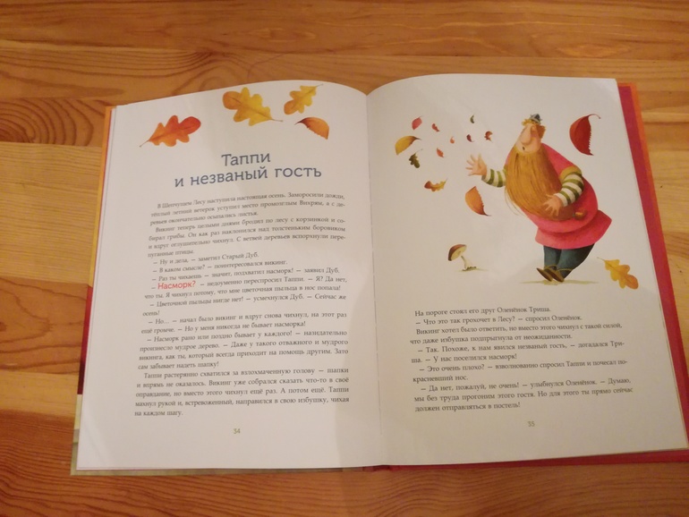 «Таппи и незваный гость». Однажды осенью Таппи не надел шапку и простудился. Олененок Триша и его друзья позаботились о викинге, который норовил вылезти из постели и страшно капризничал. Но друзья были терпеливы. Звери по очереди дежурили у кровати Таппи и через несколько дней, когда в избушку заглянуло любопытное осеннее солнышко, Таппи выздоровел.
