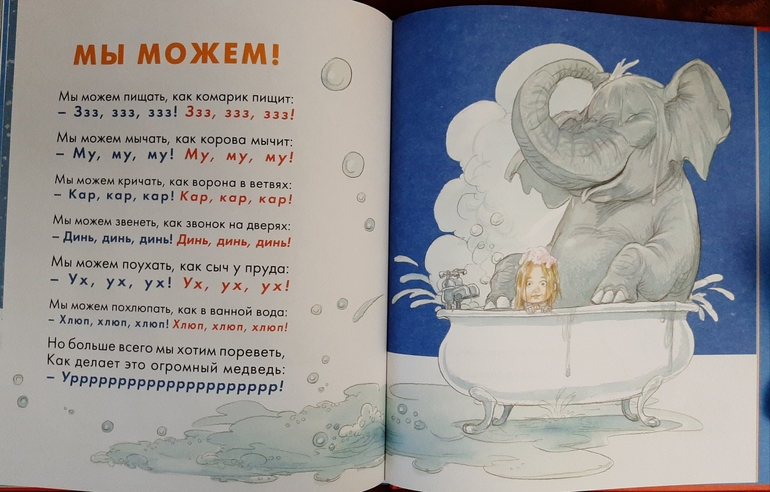 Когда берешь ее в руки, сразу хочется обняться со своим ребенком, поцеловать в макушку и крепко прижать к себе! А потом открываешь книгу, и какие там объятия?! Нужно прыгать, топать, зажигательно танцевать и издавать разные веселые звуки!))