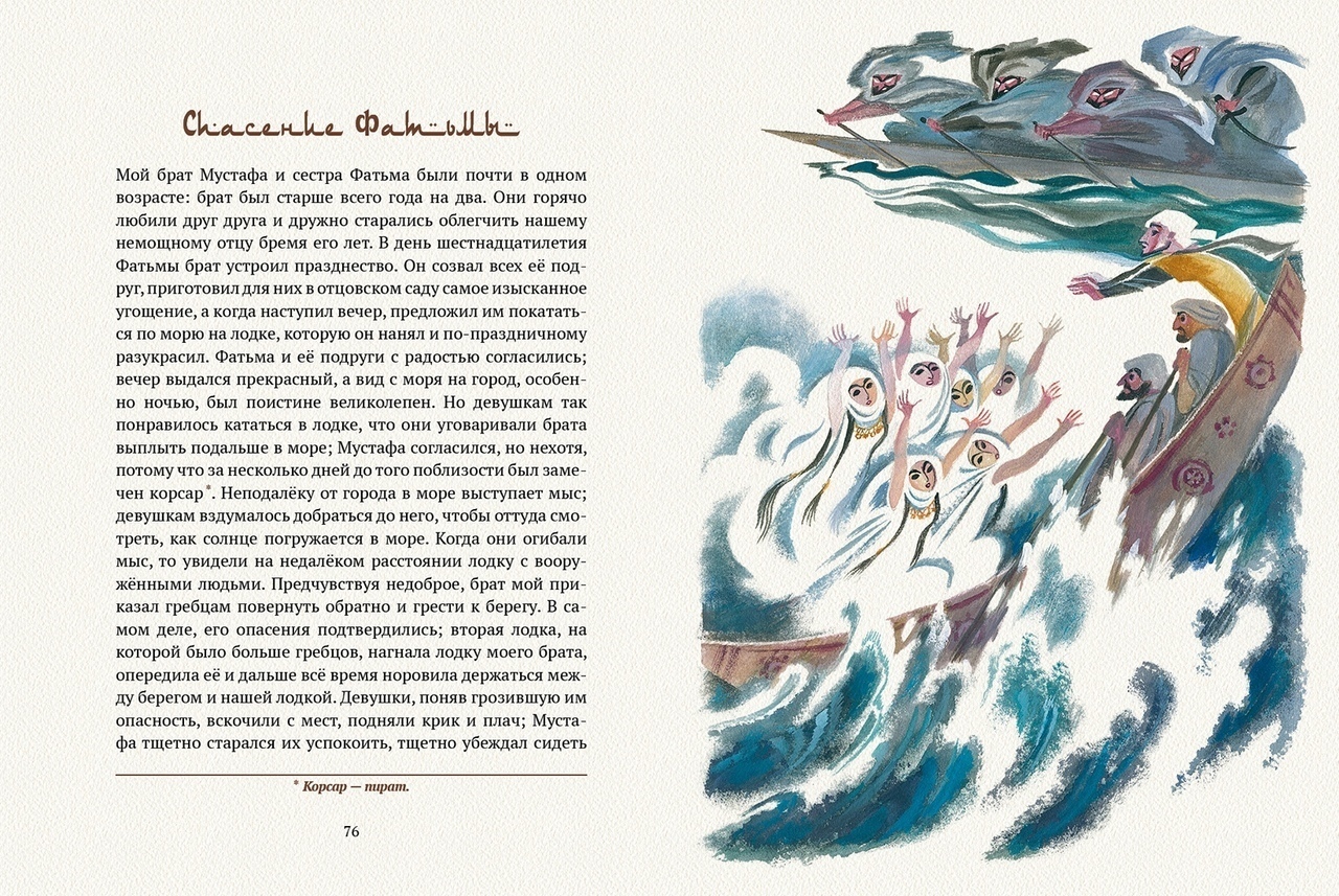 Нежные иллюстрации, немного похожие на миражи, которые могли видеть герои «Каравана», создала художница Ника Гольц, для которой Вильгельм Гауф был одним из любимых писателей.