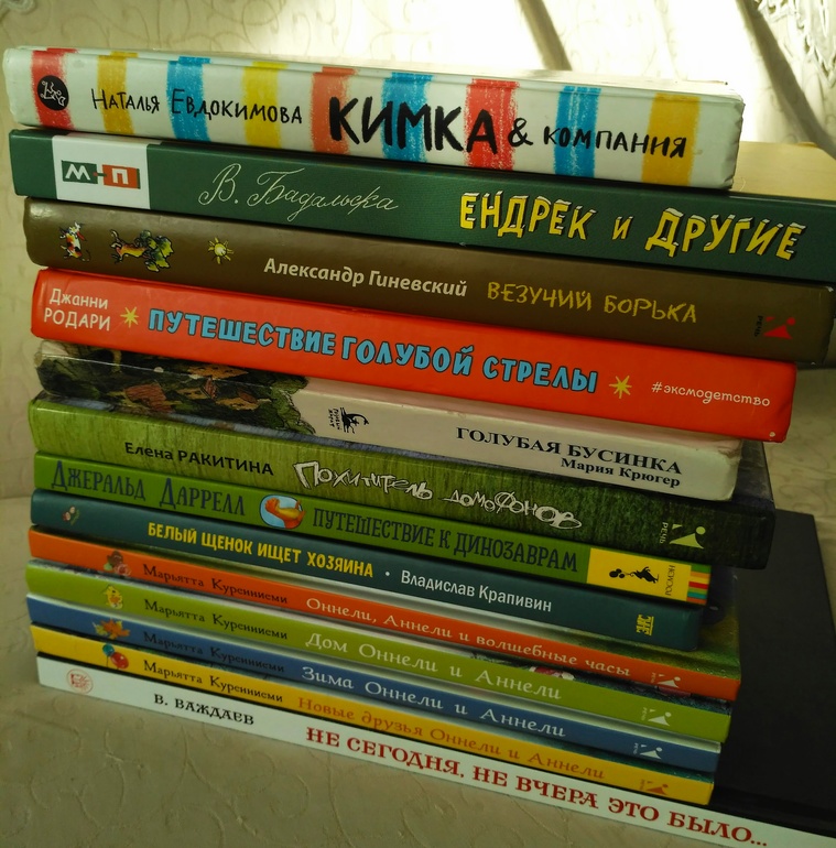Кимка и компания , библиотечная книга, забавная история о жизни мальчика Кимки, семья которого любила смотреть телевизор. "Однажды Кимки не было дома три дня и никто этого не заметил! Мама ну ты представляешь!" Дочке понравилась книга, прочитала за выходные.