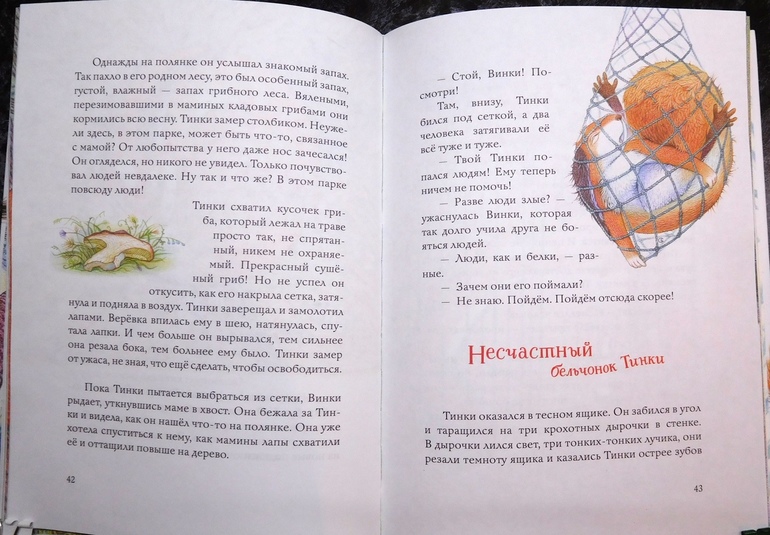 История непослушного бельчонка Тинки читается легко и с интересом. Сюжет динамичный, со множеством поворотов. А сама сказка добрая и поучительная: очаровательный главный герой, попав в неприятности из-за собственной неосторожности, не отчаивается и, в конце концов, находит из ситуации достойный выход.