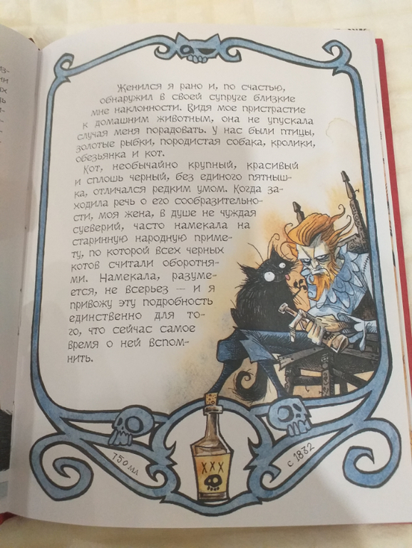 Книга небольшого размера в твердой матовой обложке с частичной лакировкой. Блоки прошиты и склеены, каптала нет(( Страницы мелованные и достаточно плотные - не просвечивают. В сборнике всего 4 рассказа, но книга куплена из-за иллюстраций! Это тот самый Грис Гримли, который так же в АСТ проиллюстрировал Этюд в багровых тонах сэра Артура Конан Дойля!
