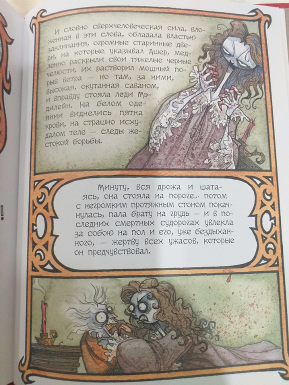 Иллюстраций невероятное количество - все развороты в картинках (надеюсь, текст напечатан полностью - не проверяла). И мне кажется, эти рисунки очень подходят пугающим, ироничным и тонко прописанным рассказам По! Да что я все говорю, смотрите сами: