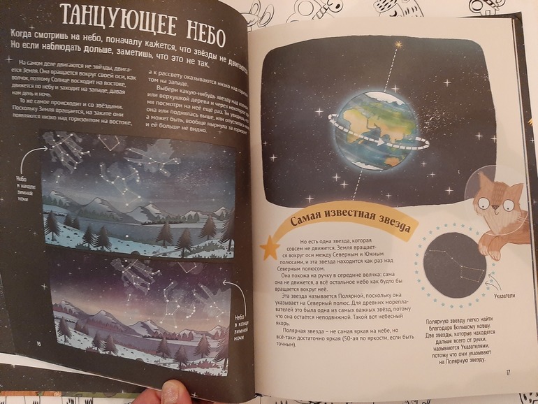 Тоже новая книга. Кот Счастливчик рассказывает о том, когда можно увидеть падающие звезды, какие бывают затмения, как отличить звезду от планеты, какие существуют туманности и тд. Картинок много, текста не очень, рассчитана на дошкольников и младших школьников. Но честно признаться, даже я далеко не все знала🤷♀️