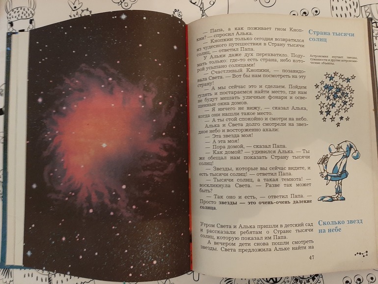 2. А эта книга еще моя, рассчитана на 5-7 лет. Очень интересная и познавательная. В течении книги, двое детей с помощью папы и гнома-волшебника знакомятся с солнечной системой и звёздным небом в лёгкой, увлекательной форме. Более хорошей книги, с лёгкой подачей информации и огромным количеством материала я не встречала. Сейчас есть переиздание.