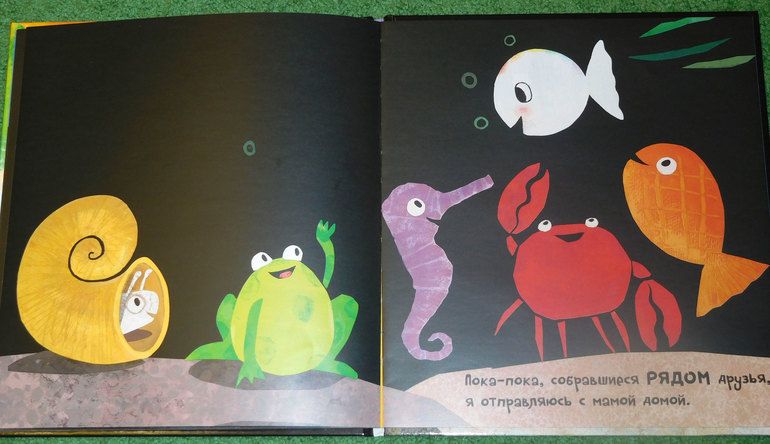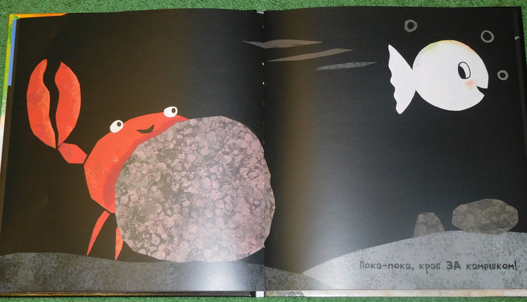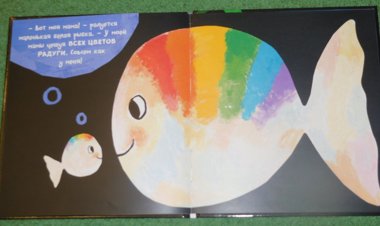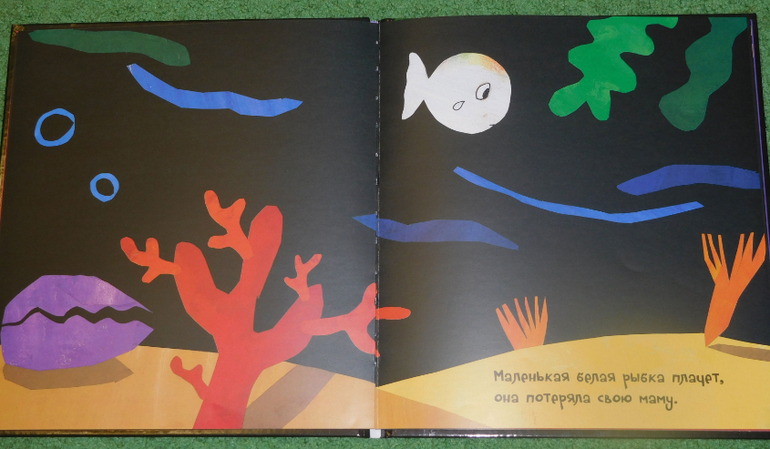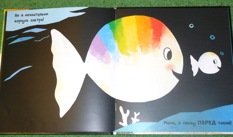 Заканчивается история тем, что маленькая белая рыбка обещает вернуться завтра и уплывает вместе с мамой... Чем не уход домой из детского садика? :) Именно в таком контексте я и читаю эту историю своей трехлетней дочки (да-да, трёхлетке эти книги тоже интересны!)