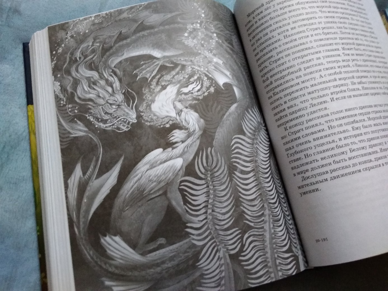 Плюс почти вся мелкая и крупная нечисть, содержащаяся в энциклопедиях и относящаяся к низшей местечковой мифологии, тоже присутствует в великом множестве. Я, как неискушенный читатель, не особенно интересующийся темой в зрелые годы, а детские интересы порядком подзабывший, была удивлена разнообразию представителей потусторонних сил, в изобилии встречавшихся на пути и путавшихся у героев под ногами, пытающихся им помешать или помочь. В повествовании огромное количество магов, колдунов и колдуний, повелителей и представителей разных стихий и светлых и темных сил. Весь этот хоровод, а также их владения и места обитания описаны подробно и местами очень цветисто. А также изображены на многочисленных иллюстрациях.