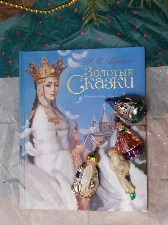 9. Сказки Пушкина - У Лукоморья (у нас их две, одна с илл Кочергина, другая с илл Михаила Бычкова), и Сказка о царе Салтане в сборнике с илл Рейпольского, остальные пока сложно. Сказку о царе Салтане пытается заучивать, но много непонятных слов. Поддерживает интерес к сказкам Пушкина и мамино увлечение - собираю советские елочные игрушки по сказкам.