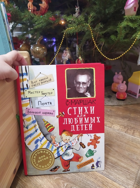 4. Маршак «Мистер Твистер», «Человек Рассеянный» и «Почта» с илл Елисеева. «Мистер-Твистер» как ни странно полюбился, это советское стихотворение против буржуазии и, казалось бы, на возраст постарше. Но видимо дело в ритме, или словах, или оно оказалось в сборнике рядом с «Почтой». Даже и не знаю, но почетное второе место по частоте декламирования на кухне с микрофоном.