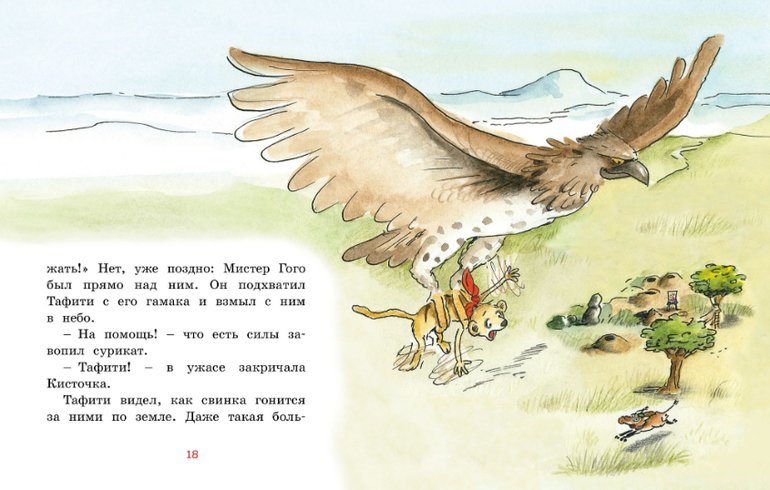 Тафити отлично проводит время, ведь теперь рядом с ним свинка Кисточка, его самый лучший друг, который всегда придёт на помощь! Но одним прекрасным днём случается то, что даже лучший друг не смог предотвратить: орёл схватил маленького суриката! К счастью, Кисточка полна решимости и идей, чтобы организовать смелую спасательную операцию высоко над облаками саванны.