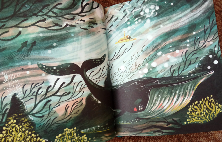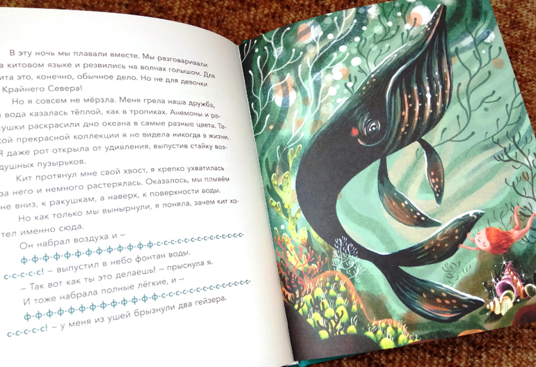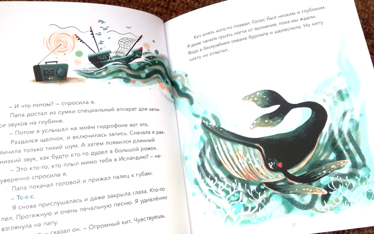Объясню о чем я. Текст немного странный: у девочки нет мамы, папа постоянно уезжает в экспедиции, а малышка одна, где-то на севере, следит за работой маяка. И вдруг она начинает общаться через большую ракушку с очень одиноким китом и ей больше не так грустно без папы.