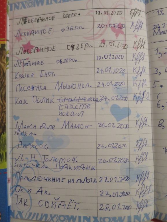 Вот таким было русское самостоятельное чтение в январе. А в заключение наш дневник: