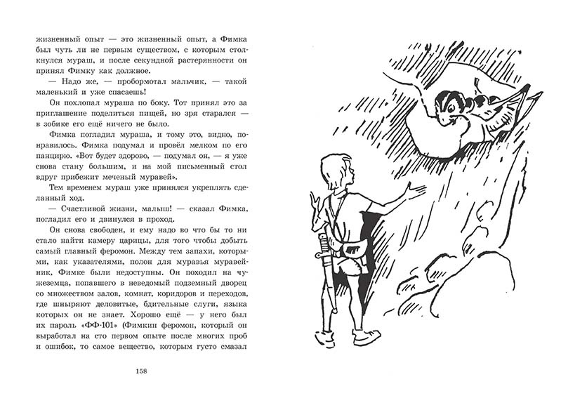 Фимка - очень умный и абсолютно бесстрашный пятиклассник - увлечен изысканиями в области муравьиной жизни. Он придумал «уменьшительные» пилюли и пробрался в муравейник, чтобы подтвердить свои научные предположения. Вслед за ним, тоже под воздействием волшебного «уменьшительного» средства, в муравейник отправилась «пёстрая» компания: следователь Людвиг Иванович и соседки мальчика: импозантная старушка Матильда Васильевна, ее внучка, любознательная дошкольница Анюня, или Нюня, и, пожалуй, самый оригинальный персонаж книги старушка по фамилии Тихая.