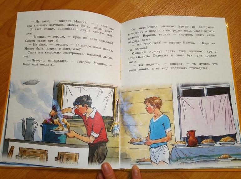 Рассказ «Мишкина каша» рассмешил и меня и сына. Самонадеянные мальчишки, оставшись одни, решили, что легко справятся с приготовлением пищи. Но это оказалось не так…
