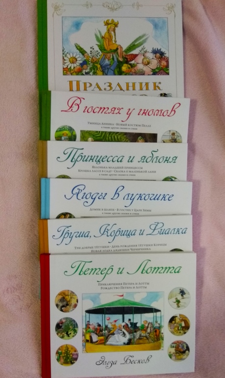 Честно решила написать из-за Эльзы Бесков!! У меня теперь вся серия!! Ура!! Как же мне она понравилась, в ней прекрасно все - содержание, перевод, рисунки, качество издания!!! Начинали с гномов в январе - влюбились вместе с сыном. В феврале взяла ее на подарок, поэтому она имеет место тут быть! И если не знаете с какой начинать - начинайте с нее! И девочкам и мальчикам можно!!!Принцесса и яблоня тоже хороша!!! Выделила их как самые удачные на мой взгляд, может соберусь с мыслями и напишу настоящий отзыв - так что бы показать, как Эльза в повседневную жизнь вплетает чудеса)))