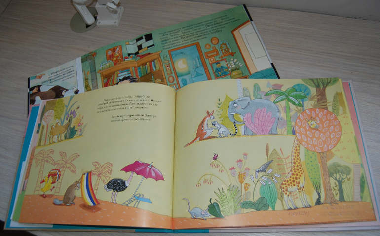 История про пантеру, которая попала в чудесный сад, в котором звери друг друга не едят и даже лев вынужден есть соевых антилоп. (Было очень жалко льва, когда читали. Вообще стало очень жалко всех зверей, которые живут в зоопарке. Потому что да, они получают еду, за ними ухаживают, но живут они в неволе... А бывает, что условия содержания плохие: клетки маленькие, еда неполноценная...) Ну вот, потом начинают пропадать звери. А пантера становится похожа на этих зверей. (Колю это очень веселило) Сначала пропала белка, потом заяц, зебра, жираф, слон и даже директор зоосада. Заканчивается история хорошо: Пантера решила выплюнуть всех, кого проглотила. И они, конечно же, живые и невредимые. А пантеру на самолете отправляют в Африку, где она радостная приступает к охоте... Для нас эта книга оказалась на раз. Конечно, она для маленьких, но дело не в этом. Лизелотта, Элмер, Груффало, Мама Му да и многие другие тоже для маленьких, но к ним возвращаемся. Эту книгу даже не просили второй раз.