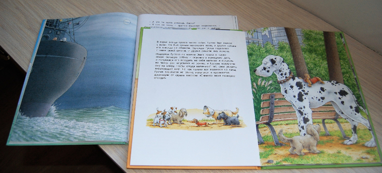 Похожие истории. Одна про маленькую собачку таксу, которая мечтает стать большим и увидеть мир. Однажды, она решается на путешествие и отправляется гулять на большой мост. Там она чувствует себя большим и счастливым, а потом отправляется домой. Вторая история про белого медвежонка, который случайно попадает в сети к морякам и путешествует на корабле, попадает в город, потом опять на корабль и возвращается домой.. Неплохие книги: хорошие рисунки, добрые истории. Конечно, для малышей. Но Коля еще слушал с удовольствием и все же, мне кажется, они лет до 5.