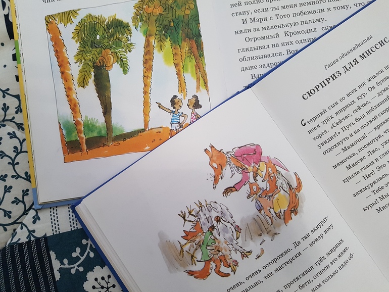 Эти книги выбирала уже я сама). Вообще первое знакомство с Роальдом Далем у меня было неудачное. В той же библиотеке я брала его "Матильду" и "Ведьмы" и обе книги мне не понравились, особенно про Матильду. После этого я долго обходила стороной этого автора, но про лиса и крокодила часто встречала хорошие отзывы и наконец-то решила их взять). И что сказать? Очень мне и сыну понравились эти книги, про крокодила так вообще два раза прочитали, но она и тоньше конечно). Особенно мне понравилась книга про изумительного мистера Лиса, настоящий детский экшн))). Очень я переживала за семейство лис)).
