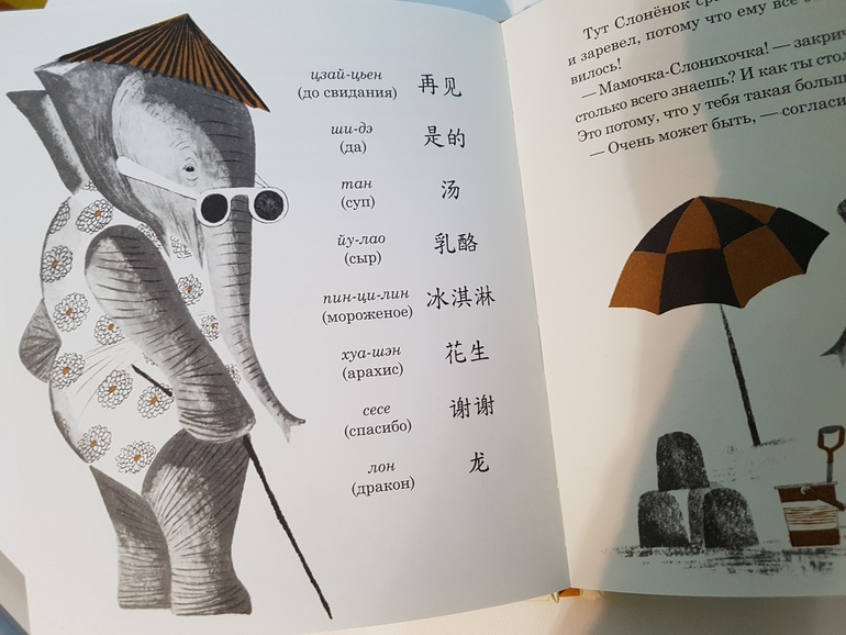"Слоненок в Китае". Ильдар конечно прослушал её, но больше и не вспомнил. Мне не очень понравилась книга, иллюстрации на мой взгляд тоже не очень симпатичные. Единственное интересное в этой книги-мини-словарь некоторых китайских слов. Таких денег, как просят за неё книжные магазины, эта книга однозначно не стоит.