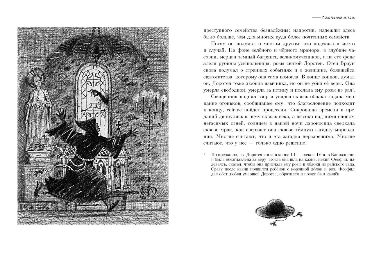 Несколько человек загадочным образом пропали, открыв магическую книгу, - что увидел в ней отец Браун и как сумел раскрыть тайну исчезновений? Поэт совершил романтический побег с прекрасной дамой - чем ему помог маленький священник, и кому на самом деле он помог? Свидетель увидел, как один человек преследует другого, - как понять, кто за кем гнался? Рассеянность отца Брауна подчас вызывает смех - но его неординарность, острый ум и способность находить разгадку самых непостижимых тайн и запутанных преступлений покоряют читателя бесповоротно. А ещё у отца Брауна есть тайное оружие - это безграничная вера в людей и терпимость даже к закоренелым преступникам…