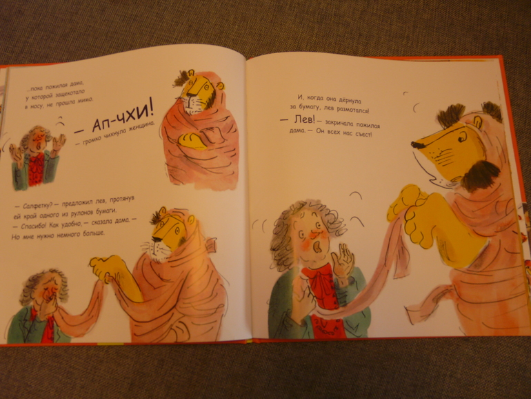 Не стану делать обзор книги "Лев в библиотеке",думаю она всем хорошо знакома . Покажу подробно вторую книгу.Формат книги большой,она квадратная.Иллюстраций много,шрифт крупный.В серии 3 книги.Это вторая книга