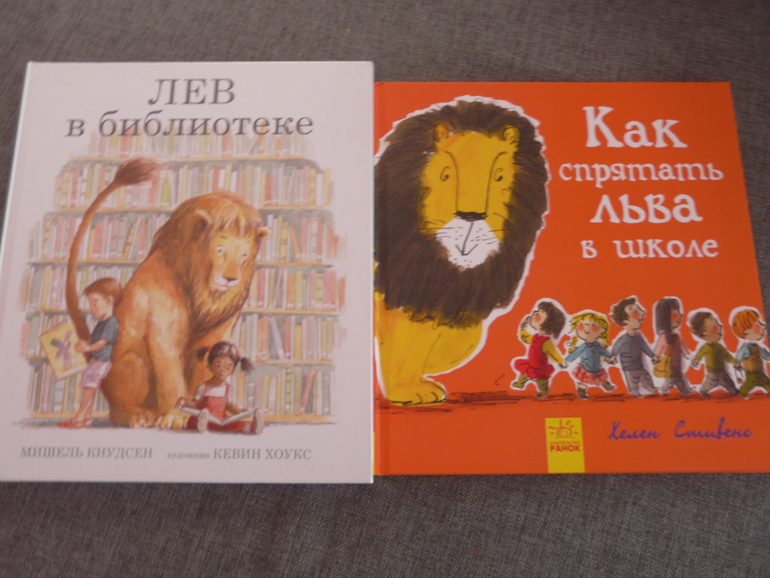 На днях я получила маленький книжный заказ с книгой "Как спрятать льва в школе" , это вторая книга серии.Но у нас это первая книга.Почему-то захотелось сравнить эту книгу с книгой "Лев в библиотеке"