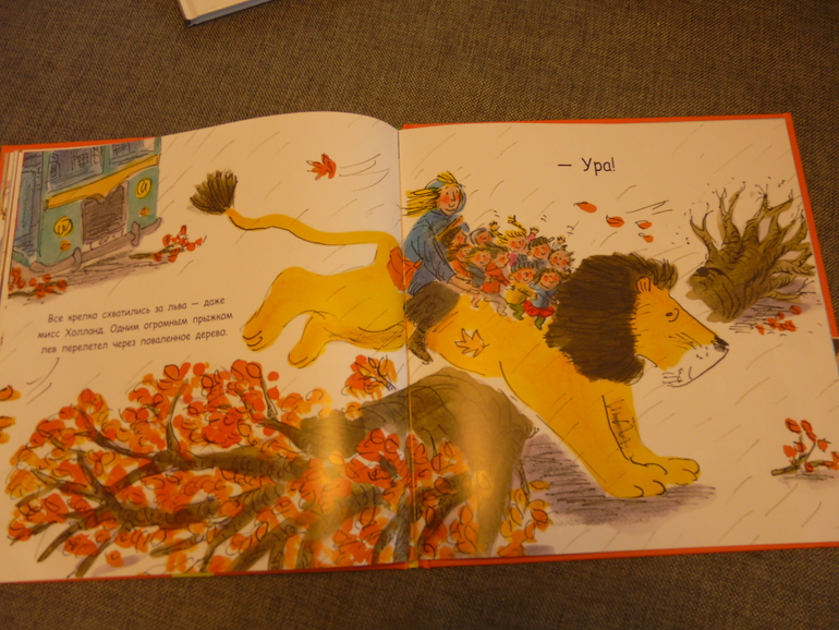 Весь класс ,вместе с учительницей быстро добрались до школы верхом на льве