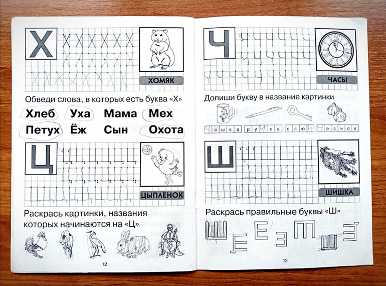 Тетради "Буквы по клеточкам" и "Букварик. Пишем и учим буквы" предназначены для закрепления алфавита и способа написания печатных букв. Дочке эти пособия помогли четко запомнить в какую сторону смотрит определенная буква. Плюс в том, что задания постепенно усложняются, от дописывания элементов букв, ребенок переходит к полностью самостоятельному написанию. Постепенно размер букв становится все меньше, а в конце их уже нужно вставлять на определенное место в слове. Данные задания направлены на развитие фонематического восприятия и слуха, а также на формирование навыка чтения.
