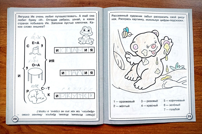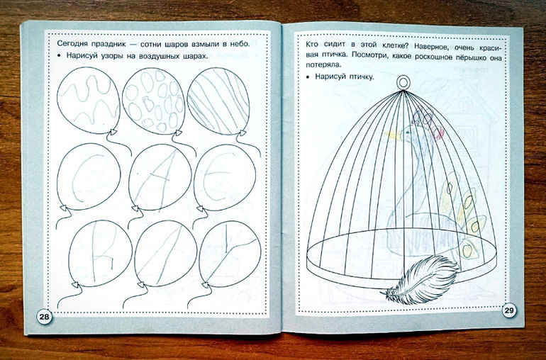 В тетради чередуются задания разных типов, которые не получится решить с помощью угадывания или выполнить "на автомате". При этом все из них оказались доступны ребенку 5,5 лет. А поскольку, дочка к этому возрасту уже умела читать, то многие упражнения она делала самостоятельно. Мне нужно было только проверить и объяснить ей те моменты, в которых она допустила ошибку. Данная форма обучения для меня одна из самых удобных.
