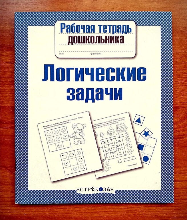 Небольшой сборник логических заданий для дошкольника. Возраст не указан, но ребенок должен уже уметь читать и писать. Мы занимались в пять лет и не все задания дочка смогла сделать самостоятельно, много где приходилось разбираться вместе. Так что пособие хорошо подойдет для занятий и в шесть и в семь лет. Ребенку предстоит объединять фигуры различными способами, ориентируясь на различные признаки: большой - маленький, круглый - квадратный, светлый - темный. Нужно решать ребусы, выполнять задания на пространственное мышление, находить отличия, составлять из слов предложения, раскрашивать и многое другое. В пособии 32 страницы и на каждой совершенно новое задание. Больше всего мне понравились именно задачки по типу: