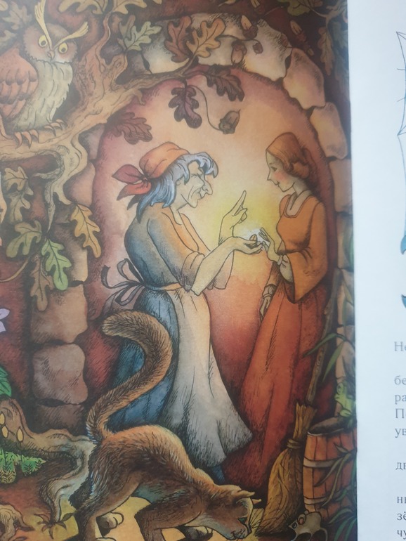 Василиса Премудрая с её полным комплектом волшебных вещей: шапка-невидимка, скатерть-самобранка, сума-дай ума и т.д.
