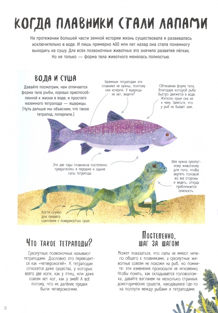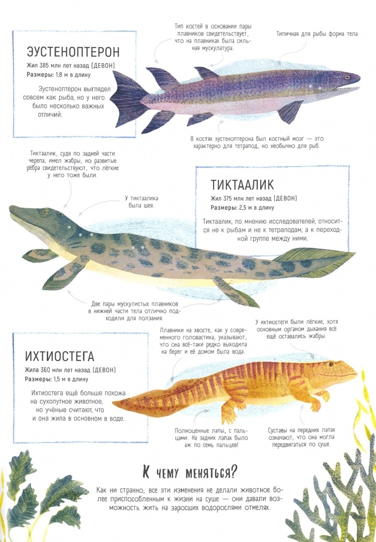 Рыбы выходят на сушу (а некоторые возвращаются обратно в море), у динозавров растут крылья, у змей пропадают ноги, киты побеждают акулу, а наши далёкие предки наконец-то слезают с деревьев - всё это захватывающие истории, из которых складывается