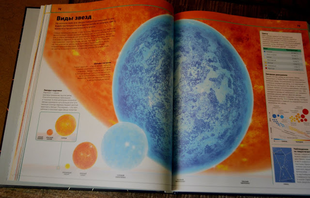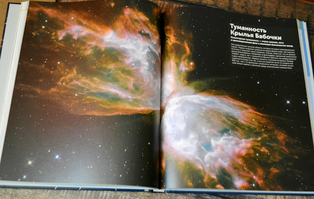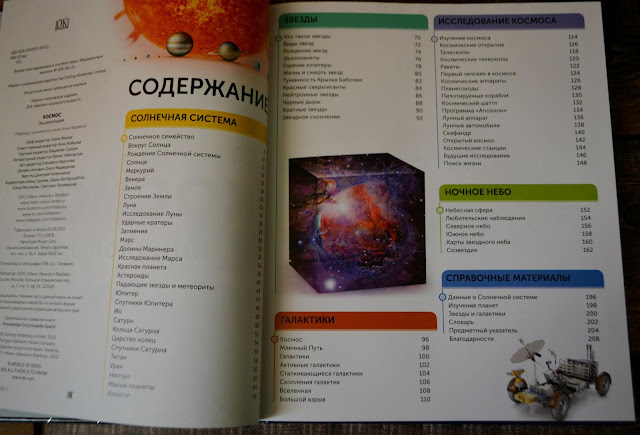 В книге можно прочитать не только про устройство Солнечной системы, но и информацию о современных телескопах, искусственных спутниках, разных исследовательских аппаратах, о типах галактик, о чёрных дырах, разные интересные гипотезы и многое, многое другое. А ещё тут есть фотографии и очень реалистичные иллюстрации- обратной стороны Луны, поверхности Марса и спутника Юпитера, и даже тень черной дыры и т.д. Из минусов- очень мало информации про освоение космоса нашими космонавтами и учёными.