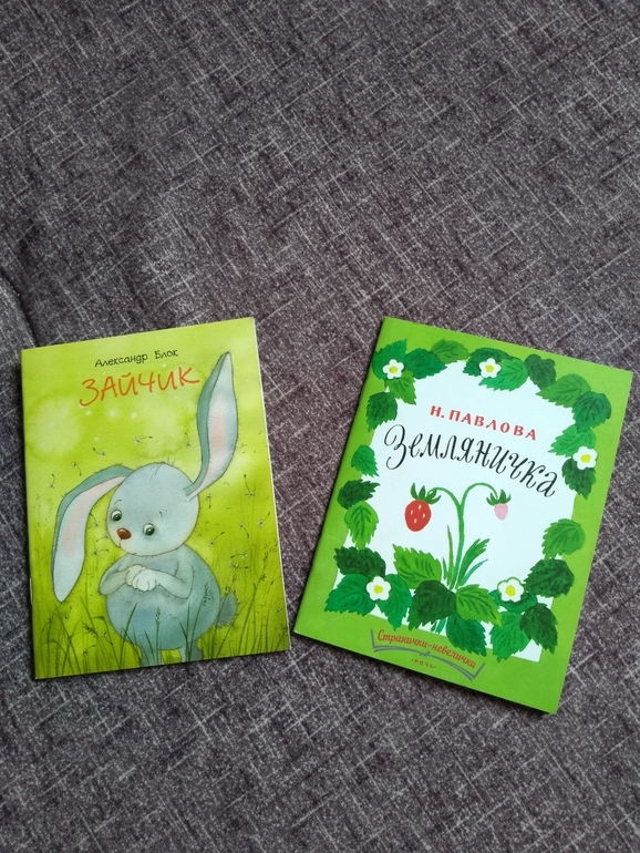 Странички-невелички от Речи были куплены еще давно, когда мать была еще не в теме :) Майе более-менее было интересно послушать пару раз про земляничку, Зайчика же авторства Блока мы так и не оценили по сей день отложу до школы. Ну зато рисунки Виктории Кирдий :)