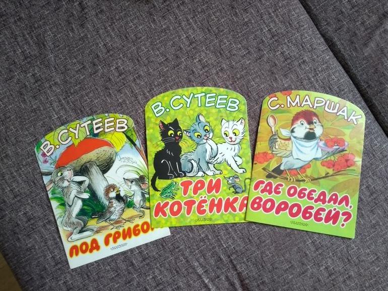 Тонкие книжки с иллюстрациями Сутеева. Хорошие как по мне, но Маюн к Сутееву дышала и дышит до сих пор абсолютно ровно, в фавориты он еще ни разу не попал.