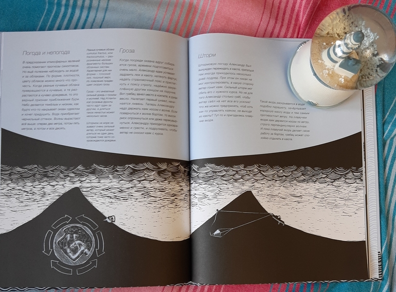 В книге невероятные черно- белые рисунки, но сколько же красок, чувств, эмоции смог передать художник этими двумя цветами! Очень глубокие, аллегоричные, "говорящие" рисунки! Они отлично иллюстрируют и дополняют текст книги, очень образно передают содержание книги!