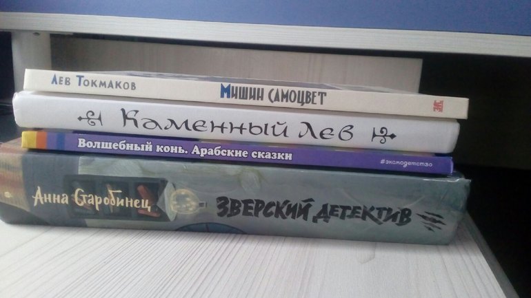 А вот с самостоятельным чтением наоборот. Все-таки карантин сотворил чудо. Просидев месяц дома, Лида сама потянулась за книжкой... Причем САМА вспомнила про купленную полтора года назад книгу А.Старобинец Зверский детектив. Книга оказалась очень толстой (на фото видно), Лида уже бралась за нее, и хоть интерес был, но объем, видимо, очень отпугнул. В этом сборнике 4 книги под одной обложкой. Я ей предложила прочитать хотя бы одну часть, и ЛИда опять взялась за чтение. Первая часть Логово волка читала по сравнению с предыдущими месяцами быстро, причем бралась за книгу САМА, без просьб и напоминаний. Немного она читала мне вслух, и мне, честно говоря, не очень понравился язык, какие-то сложные слова, похоже больше на взрослый детектив, чем на детскую книжку. Да и сюжет из той же серии. Допустим, в первой части - многодетная неблагополучная семья зайцев решает провернуть махинацию, обвинить волка в убийстве, чтобы забрать себе его квартиру! Ну как-то добрее должны быть детские книги... Сами названия частей уже чем-то таим отдают... не детским! Но ЛИде понравилось, читала, первая часть зашла прямо удачно, прочитана была за пару дней. Дальше темп замедлился. Я предлагала Лиде взять другую книгу, но она сказала, что, пока помнит, про что там, будет читать эту (как я поняла, завязка второй части дана уже в конце первой). Вторая часть Право хищника - читала около недели, темп спал. Но для нас это вообще круто( Третья часть Когти гнева - по названию Лида определила, что это самая интересная часть, но потом сказала, что нет. Когда дочитала, сказала, что больше эту книгу читать не будет - Барсукота выгнали из полиции( Однако тут же взялась читать последнюю часть Щипач. Вот она оказалась самой интересной, Лида ею прямо зачитывалась, прочитала быстро. Кое-что мне зачитывала и рассказывала. Я укрепилась во мнении, что мне не нравятся такие книги. Сюжеты взрослых детективов переложены на детские. И еще для Лида эта книга оказалась слишком эмоционально волнительной. Ей даже сон приснился страшный. Барсукот стал ее героем. Но в общем, книга Лиде очень понравилась. Спрашивала про продолжение. Оно есть, но я пока не буду покупать. Дороговато (может будут хорошие скидки), и все-таки я думаю можно еще подождать, не совсем доросла до этого Лида. С другой стороны, пока интерес есть, надо этим пользоваться. Может, теперь наконец наше чтение сдвинется с мертвой точки и больше Лиду не придется уговаривать и заставлять почитать(