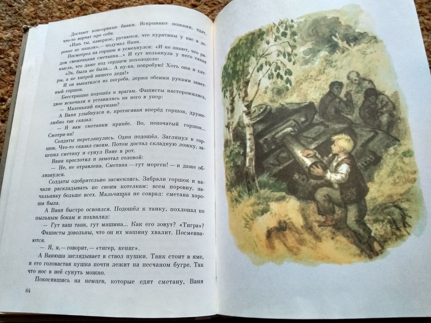 Даже если бы меня, к примеру, обязывали что-то обсудить, я бы все равно свела занятие к чтению рассказа, стихотворения и вопроса о воевавших родственниках - даже не для обсуждения, а просто чтоб тот, кому не терпится что-то сказать, сказал бы. Сразу подумала про рассказ Николая Богданова "Медовый танк" - потому что он мне кажется подходящим по переживаемым ощущениям, близким уставшим от карантина детям. Внутри танка не очень-то развернешься, а в начале рассказа бойцы на жаре из замаскированного танка наблюдают за фашистами, за тем, как они грабят деревню. А потом вступают в бой. И все накопившееся напряжение находит выход в описании
