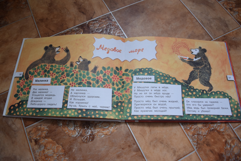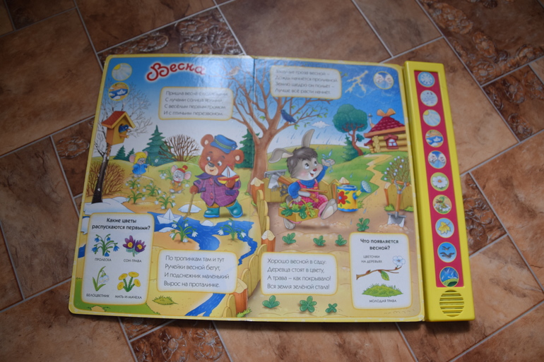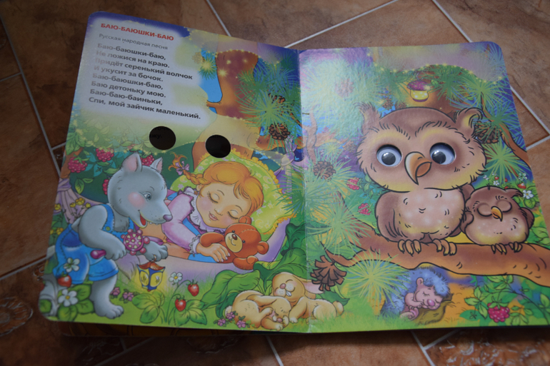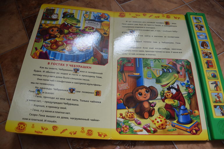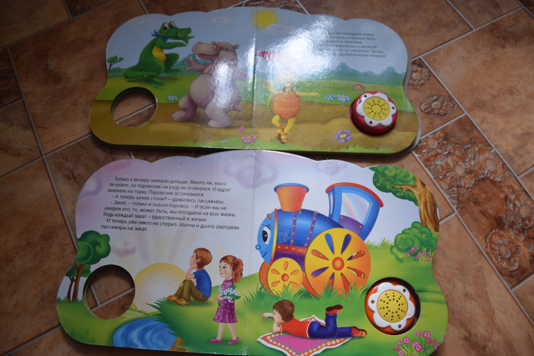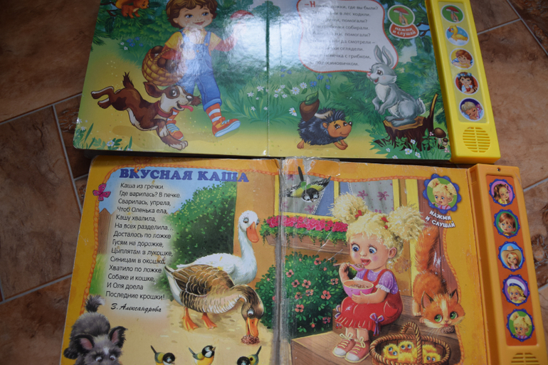 "Муха-Цокотуха" К.Чуковский сломалась. Раньше переворачиваешь страницу-и слушаешь сказку,а теперь только песенка и на вопросы можем отвечать. Сама книга классная, яркая,красочная,иллюстрации супер!