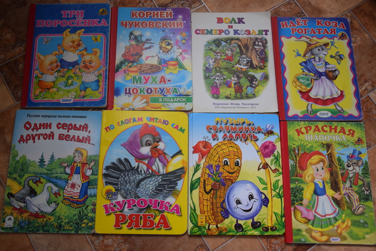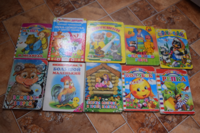 Карманные маленькие книжечки в дорогу, погулять,отвлечь. В основном сказки.
