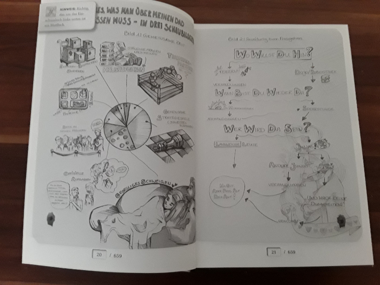 Но "игра" с читателем происходит не только на визуальном, но и на на языковом уровне. Авторы "рассыпают" по тексту своего рода смысловые подсказки того, что произойдет через пару страниц. И читателю кажется, что он знает, куда повернет сюжет в следующий момент. Сюжет действительно туда поворачивает, и думается, :"Ха, как все просто и явно, я так и думал", но потом за счет того, то перед нами не единый последовательный текст, а именно многоэлементная мозаика, авторы "поворачивают" какой-нибудь неявный пазл и проворачивают неожиданный сюжетный твист. И если в первой книге нарастание напряжения происходит постепенно и главная интрига раскрывается в финале, то во второй части этих интриг несколько, они следуют одна за одной и "дарят" читателям ощущение "американских горок", когда вынырнув из одной аховой ситуации сразу же проваливаешься в другую.