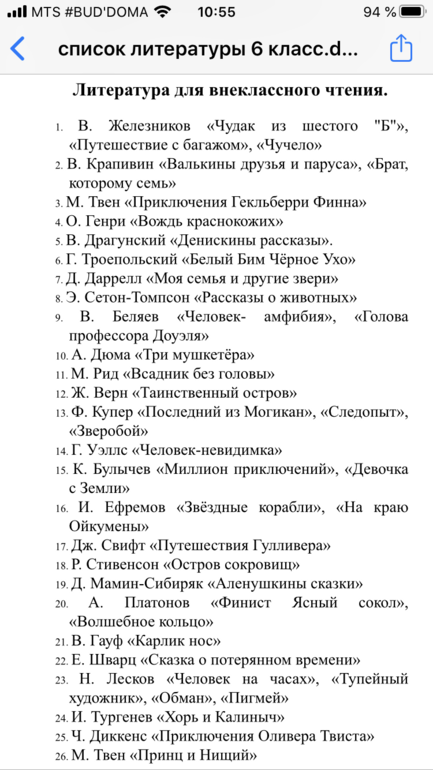 Списки книгВсем привет, наконец-то нам дали список литературы на лето.