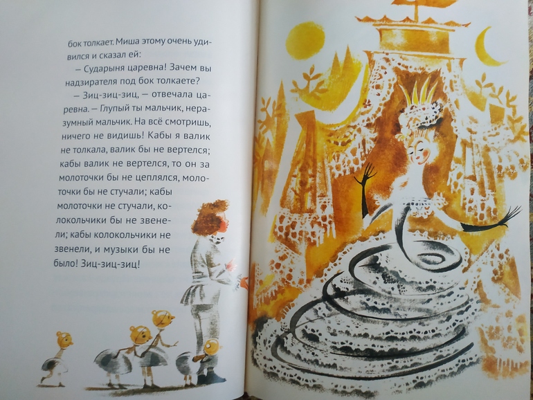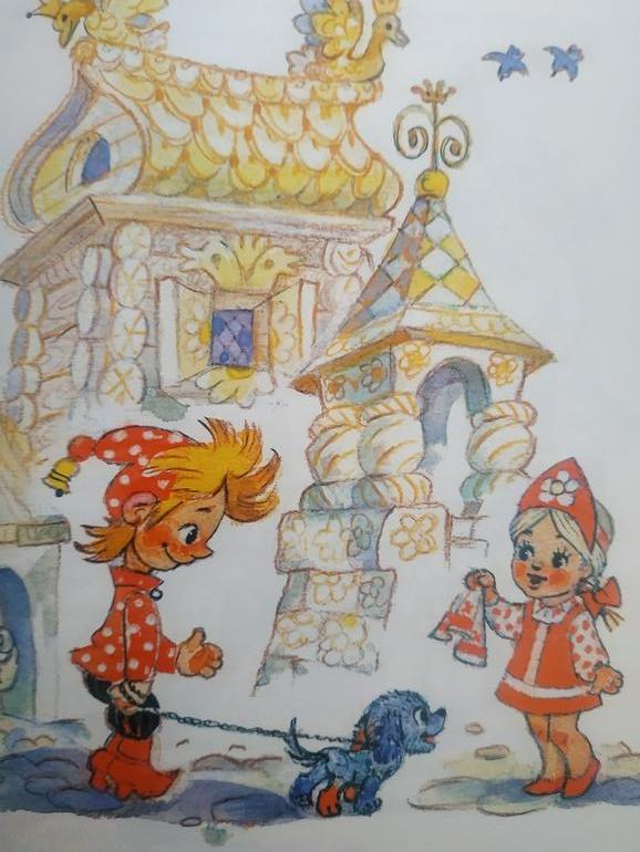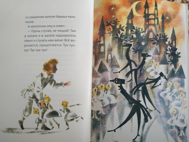 Приключения петрушки. Иллюстрации сильно бегут вперед от текста. Приходится переворачивать страницы.